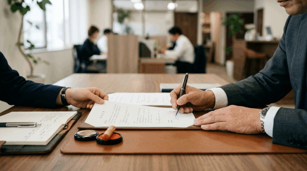 各種契約書を取り交わします。